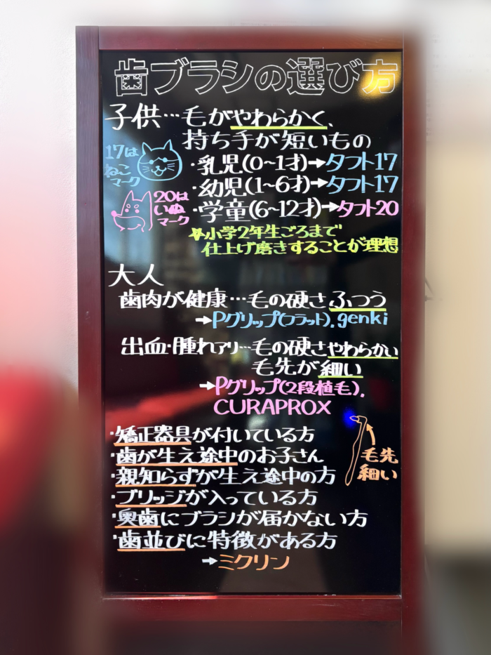 今回の看板の内容は『歯ブラシの選び方』についてです!
